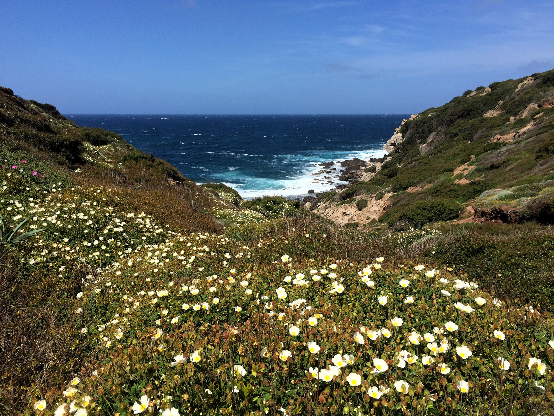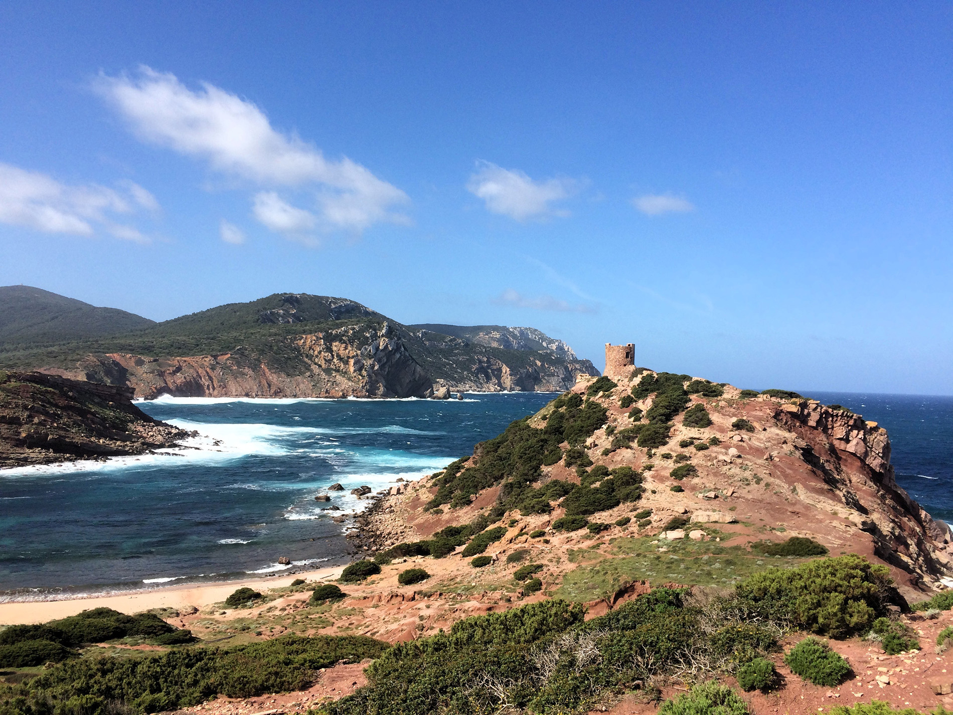 Se avete bisogno di un contatto intimo con la natura e il mare, preparatevi per questo percorso ad alto contenuto scenografico. La zona è poco frequentata ed è la più scarsamente accessibile del Parco Regionale di Porto Conte. Avremo dunque tempo e modo di ritrovarci completamente soli, camminando sul bordo di piccole falesie e versanti costieri. Il mare sarà sempre sotto i nostri occhi. Lungo il percorso segnato tra i cespugli bassi della vegetazione di gariga, passeremo per cale e torri di guardia spagnole. A metà del cammino una sosta di ristoro nella magnifica spiaggia di Porto Ferro. Il ritorno sarà lungo una più semplice via, diretta e nascosta dal mare ma non per questa priva di sorprese: qui i daini sono di casa.